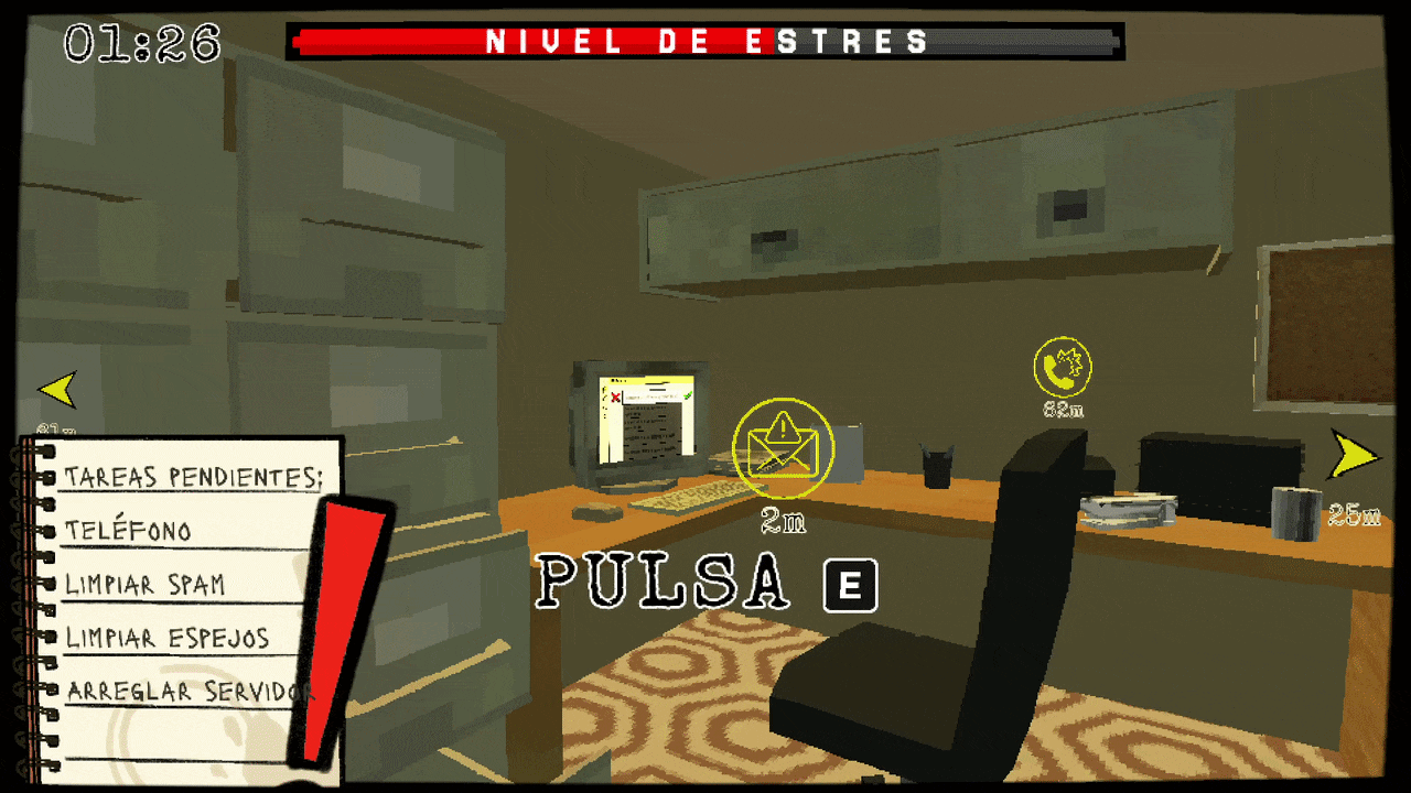 Verás. estás atrapado en una oficina caótica donde cada superior intenta descargar su trabajo sobre ti. Las tareas se acumulan sin parar, el jefe interrumpe para exigirte que atiendas sus caprichos y tu nivel de estrés sube con cada segundo. Deberás moverte rápido, gestionar el caos y encontrar momentos para descansar mientras luchas por sobrevivir a la avalancha de trabajo. Aguanta todo lo que puedas... antes de que el estrés te supere.